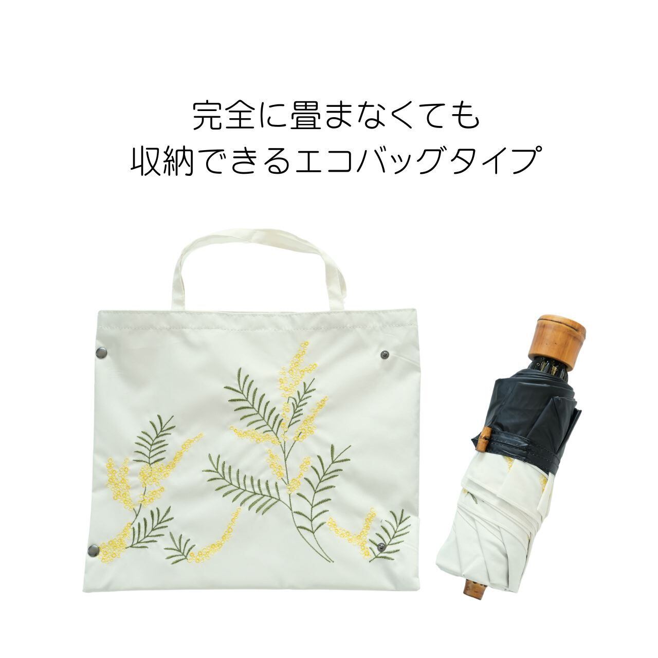 クラシコ 完全遮光 日傘 ミモザ 刺繍 折り畳み バッグ 収納タイプ バンブー つつ ハンドル ギフト可