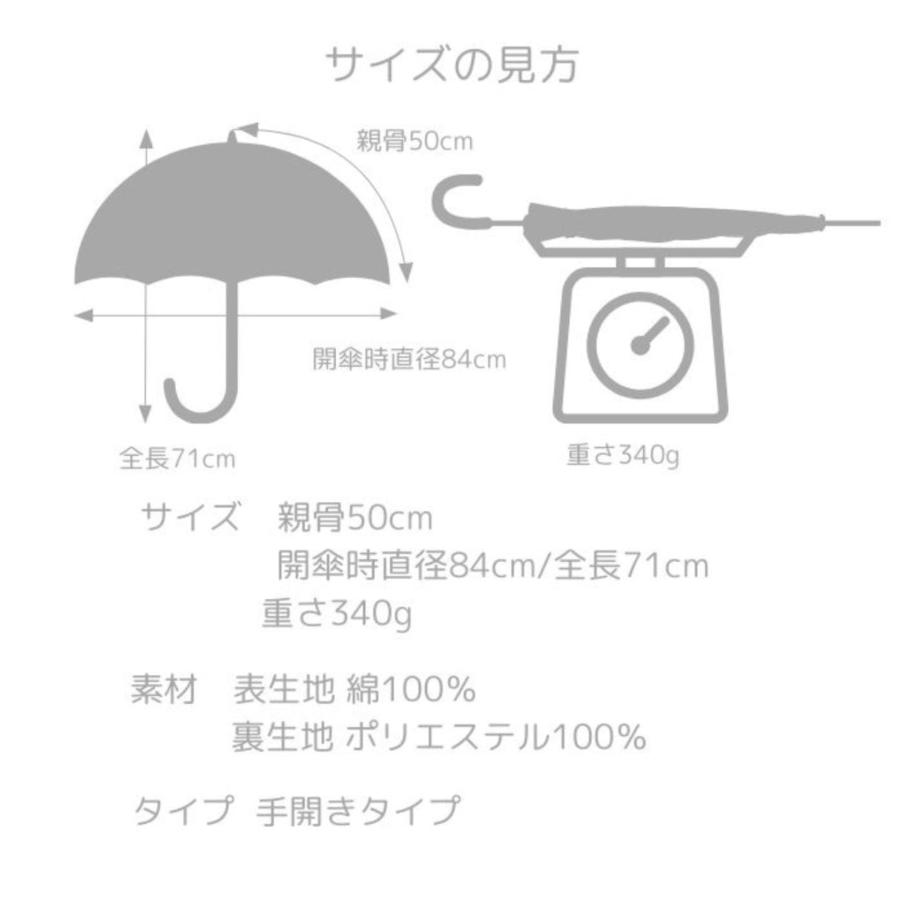 表生地にはリバティ社の生地、裏生地には完全遮光生地を使用した晴雨兼用の完全日傘です。