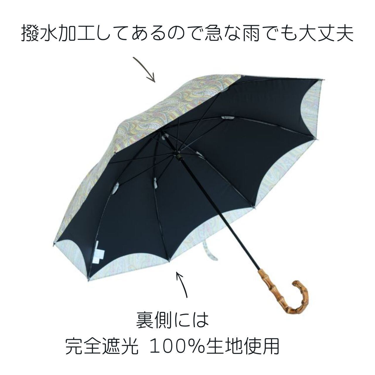 リバティ社のペイズリー柄生地を使用した晴雨兼用の完全遮光日傘。