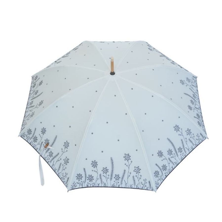 繊細な刺繍が施された美しいデザインと、高い機能性を兼ね備えた晴雨兼用日傘です。