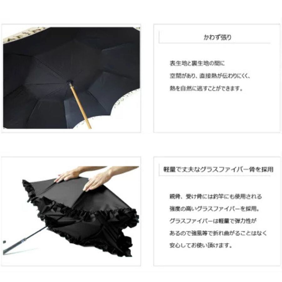 繊細な刺繍が施された美しいデザインと、高い機能性を兼ね備えた晴雨兼用日傘です。