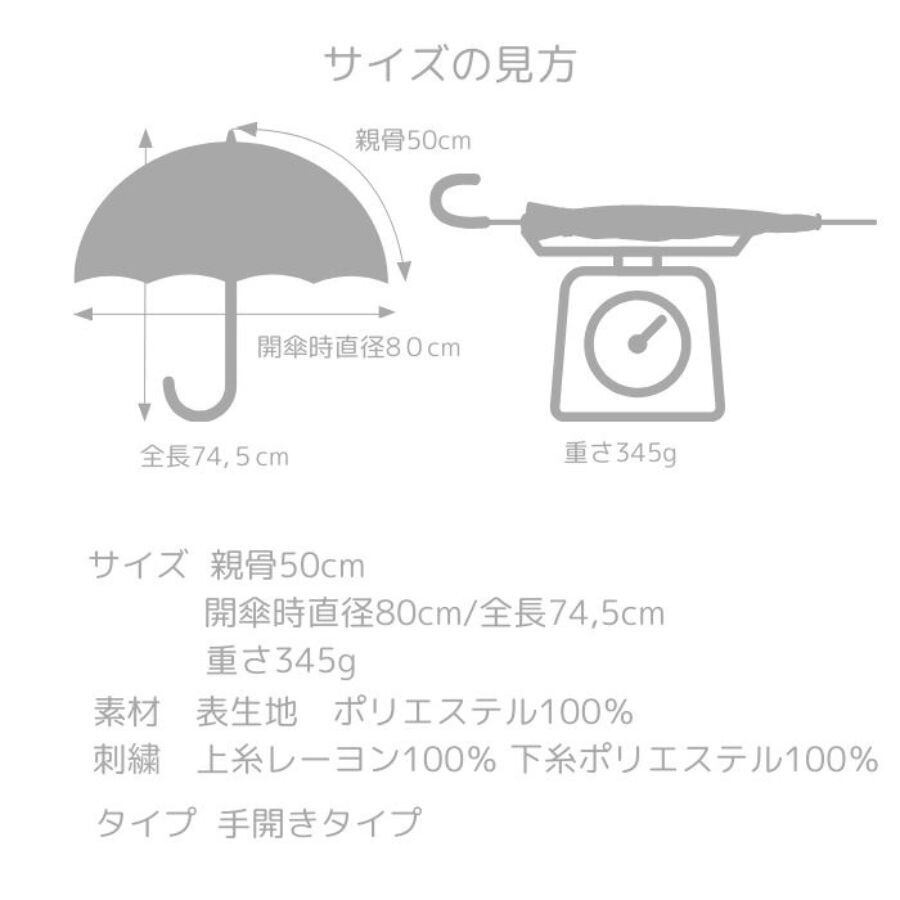 サイズ 親骨50cm/開傘時直径85cm/全長74.5cm/重さ345g