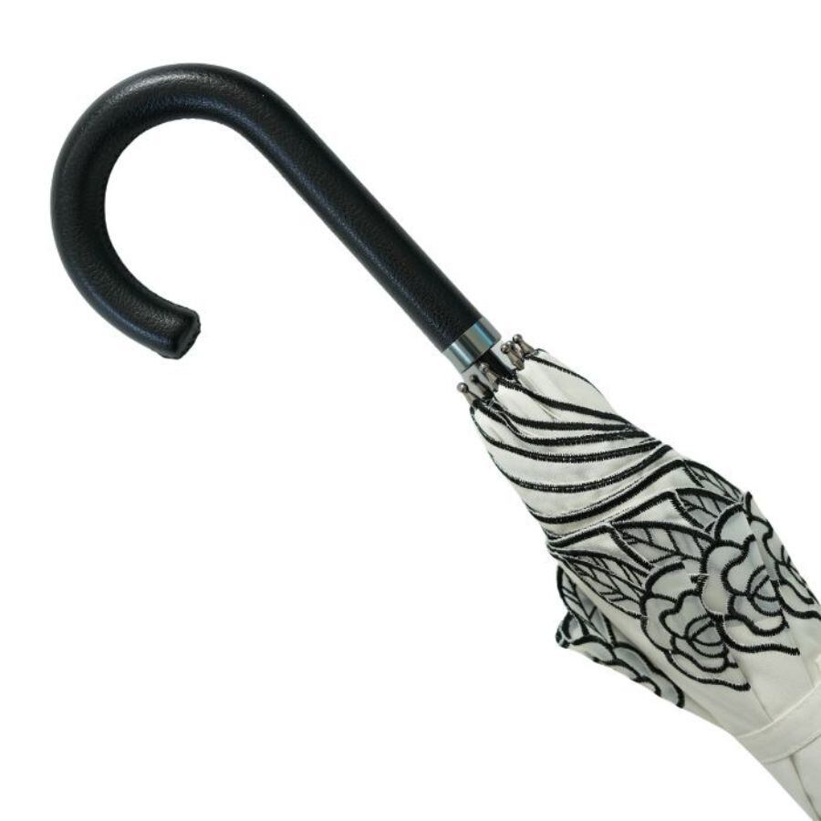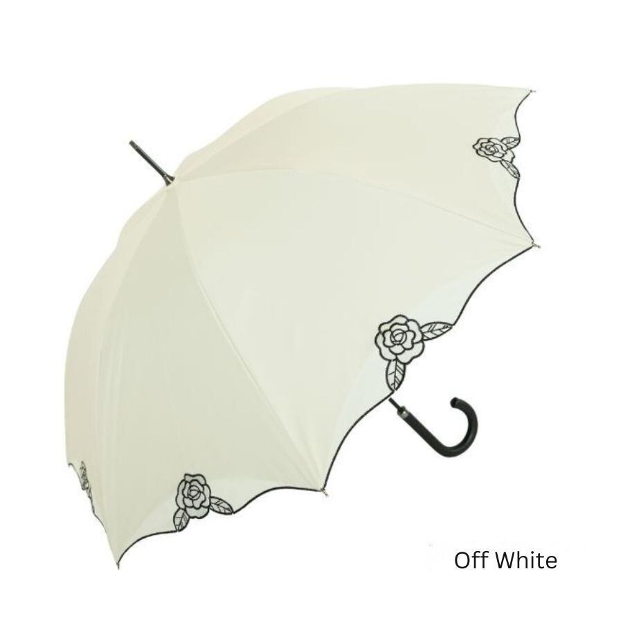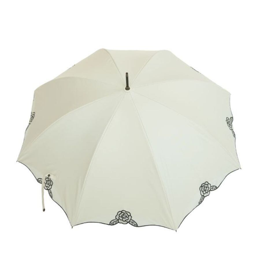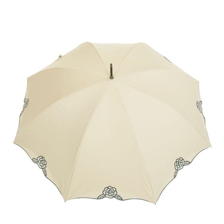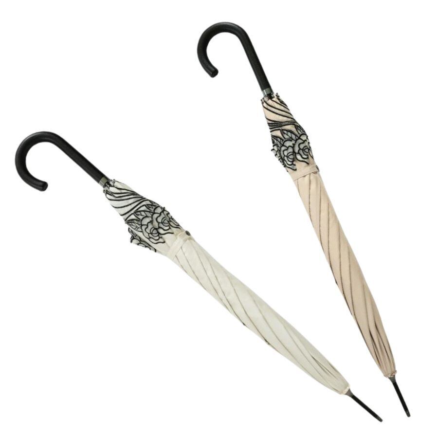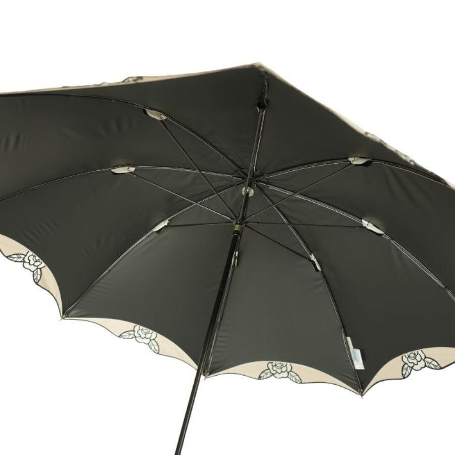 クラシコ ローズ オーガンジー 刺繍 完全遮光 100% 晴雨兼用 日傘 ベージュ オフ