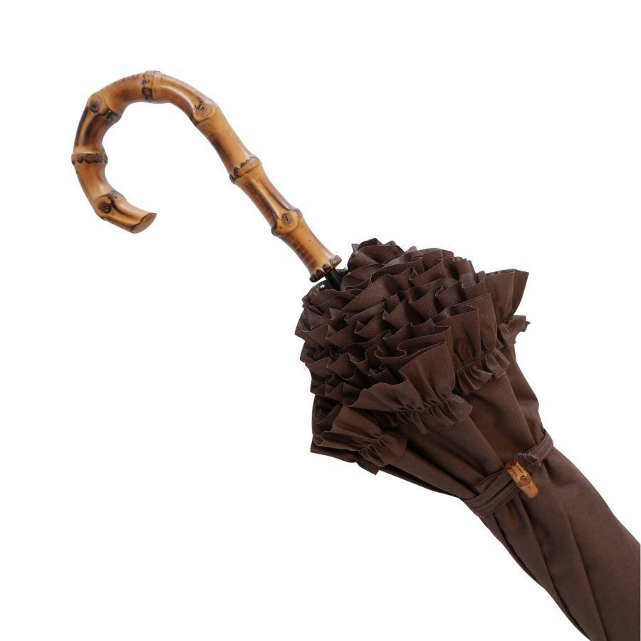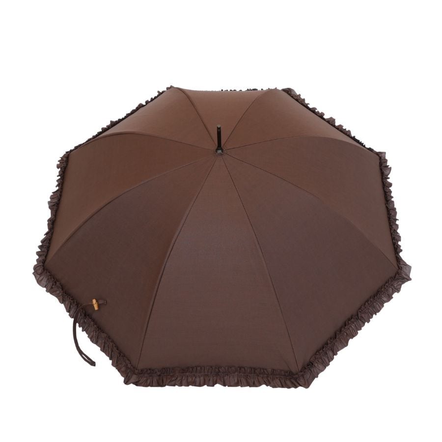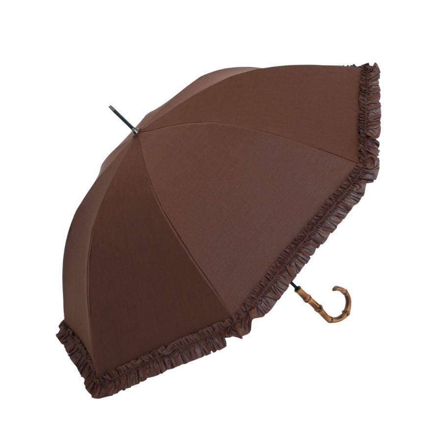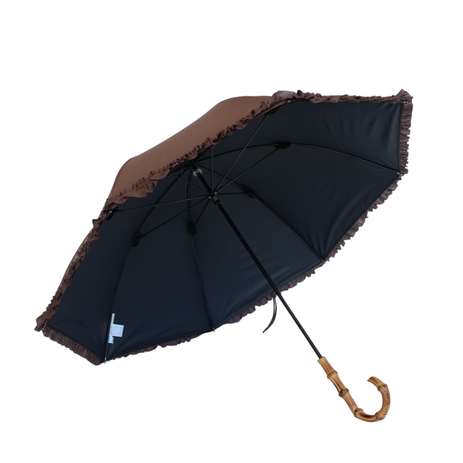 クラシコ 綿 麻 フリル 完全遮光 100% 晴雨兼用 日傘 大人可愛い バンブーハンドル ブラウン