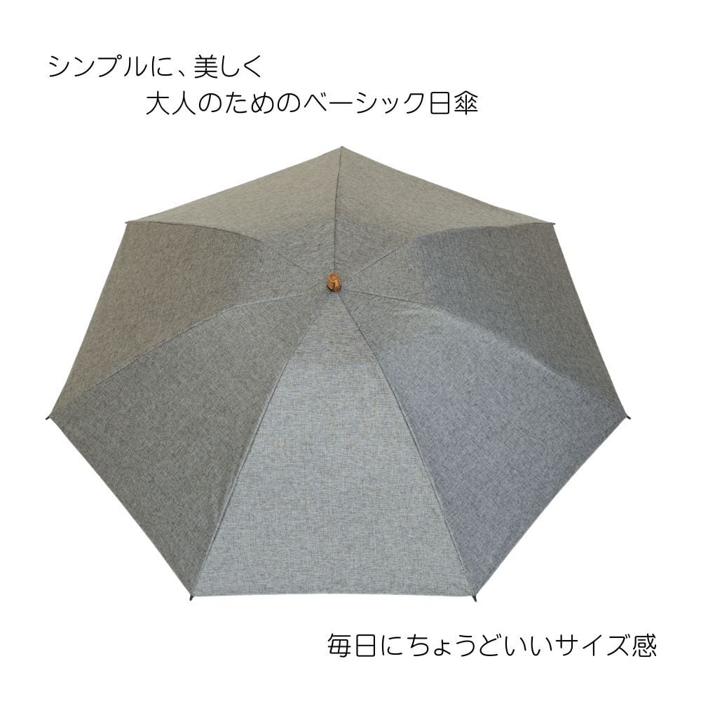 上品なシャンブレー調生地で仕立てた、完全遮光・晴雨兼用の折りたたみ日傘です。