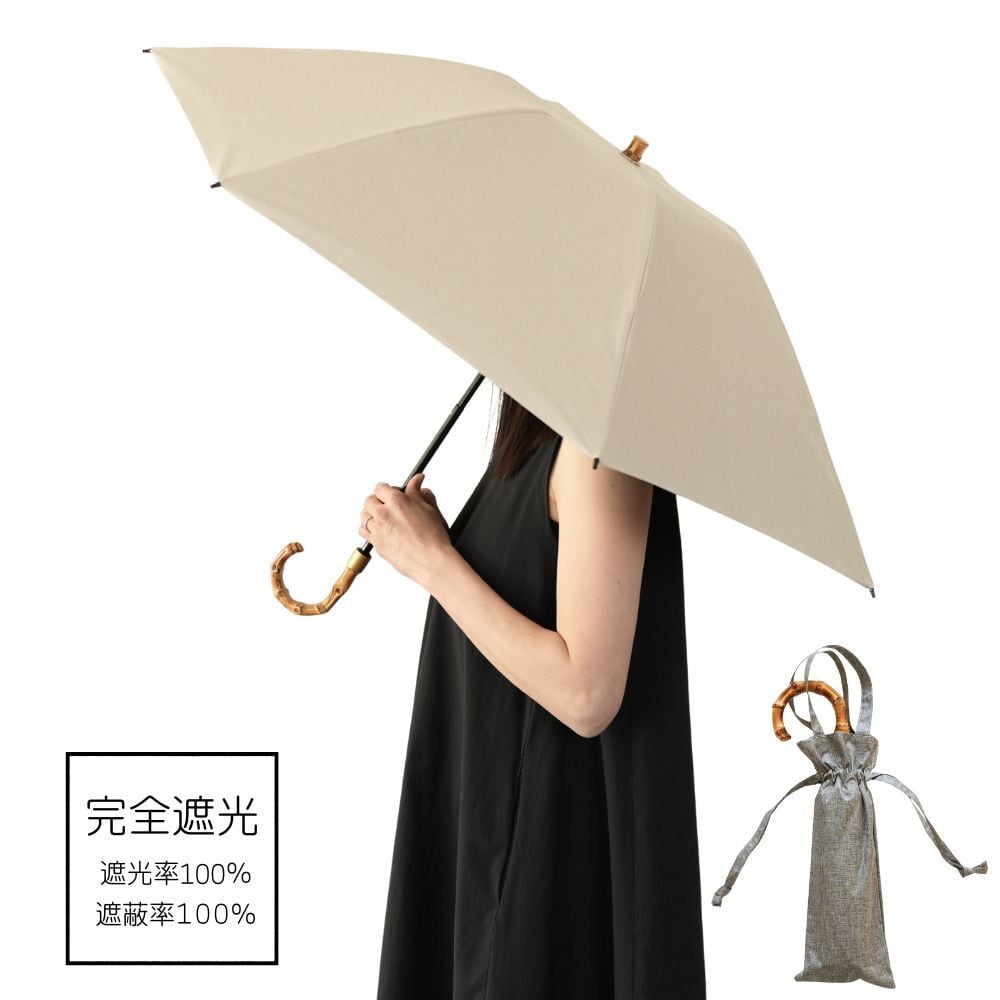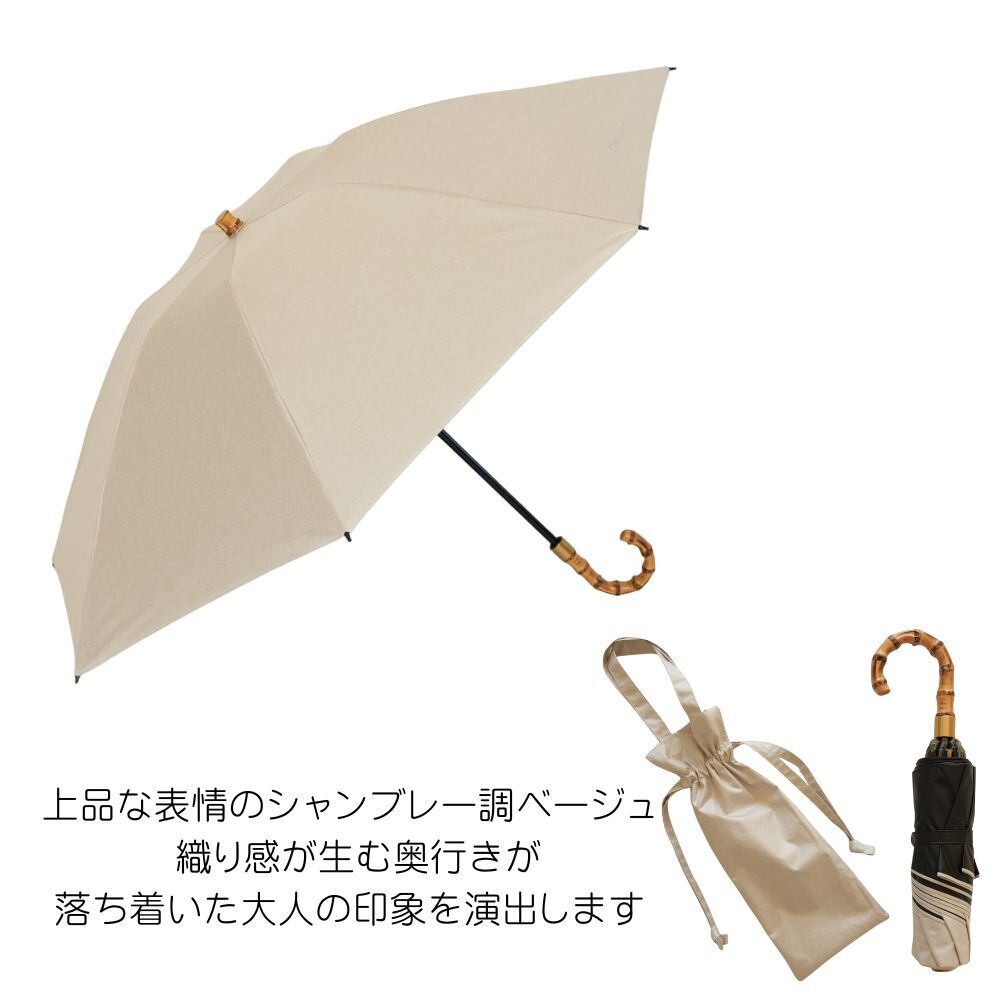 クラシコ シャンブレー 完全遮光 まがり バンブー 日傘 折りたたみ 50cm 晴雨兼用傘 レディース 遮光 遮熱 紫外線対策 折りたたみ傘 おしゃれ 高級 大人 グレー ベージュ 通勤 通学 ギフト