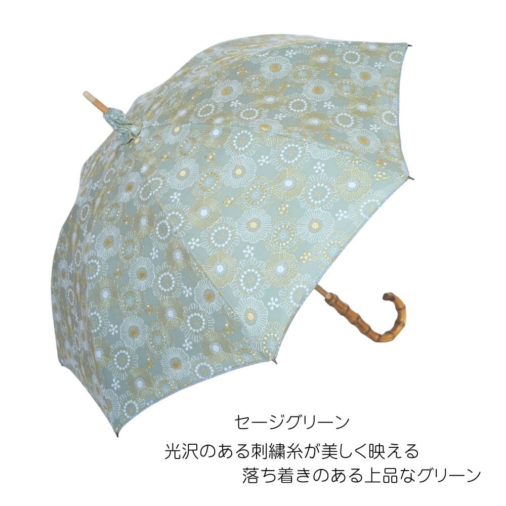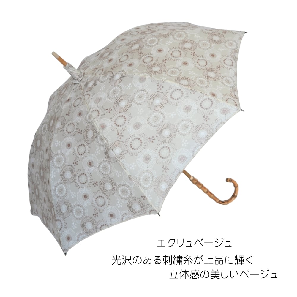 クラシコ 完全遮光 100% 日傘 フラワーパレード 刺繍 バンブー ハンドル かわずばり ギフト可
